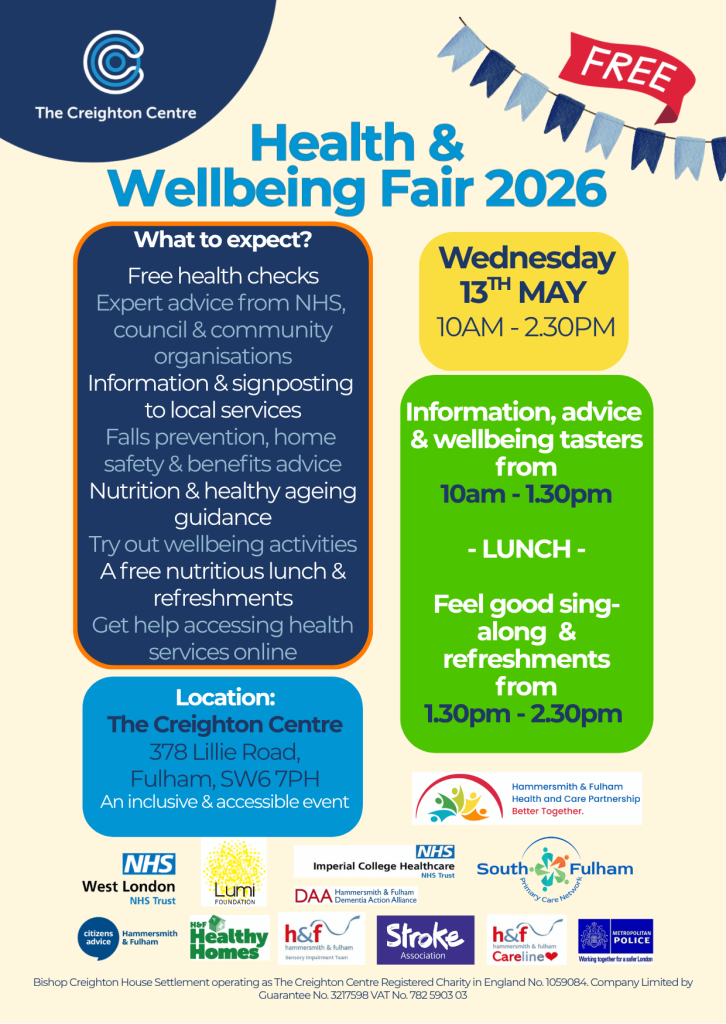 We’re excited to invite you to our annual Health & Wellbeing Fair 2026 [click here for flyer] at The Creighton Centre—a free, community event designed to help local residents stay healthy, safe and connected.